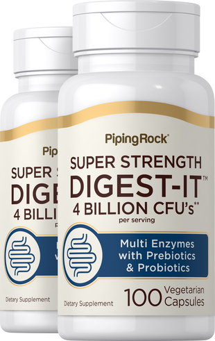 Digest-IT Multi Enzymes Super Strength with Probiotics, 100 Vegetarian Capsules, 2 Bottles