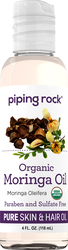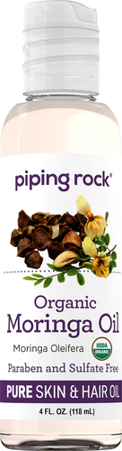 Piping Rock is excited to offer the moisturizing benefits of moringa oil in our own paraben-free, sulfate-free Organic Moringa Oil! Extracted from the kernels found in the fruits of the moringa tree, moringa oil acts as a luxurious, hydrating oil for the hair and skin. Use to add lush moisture to the ends of your hair, or rub into the scalp to promote healthy, touchable softness!